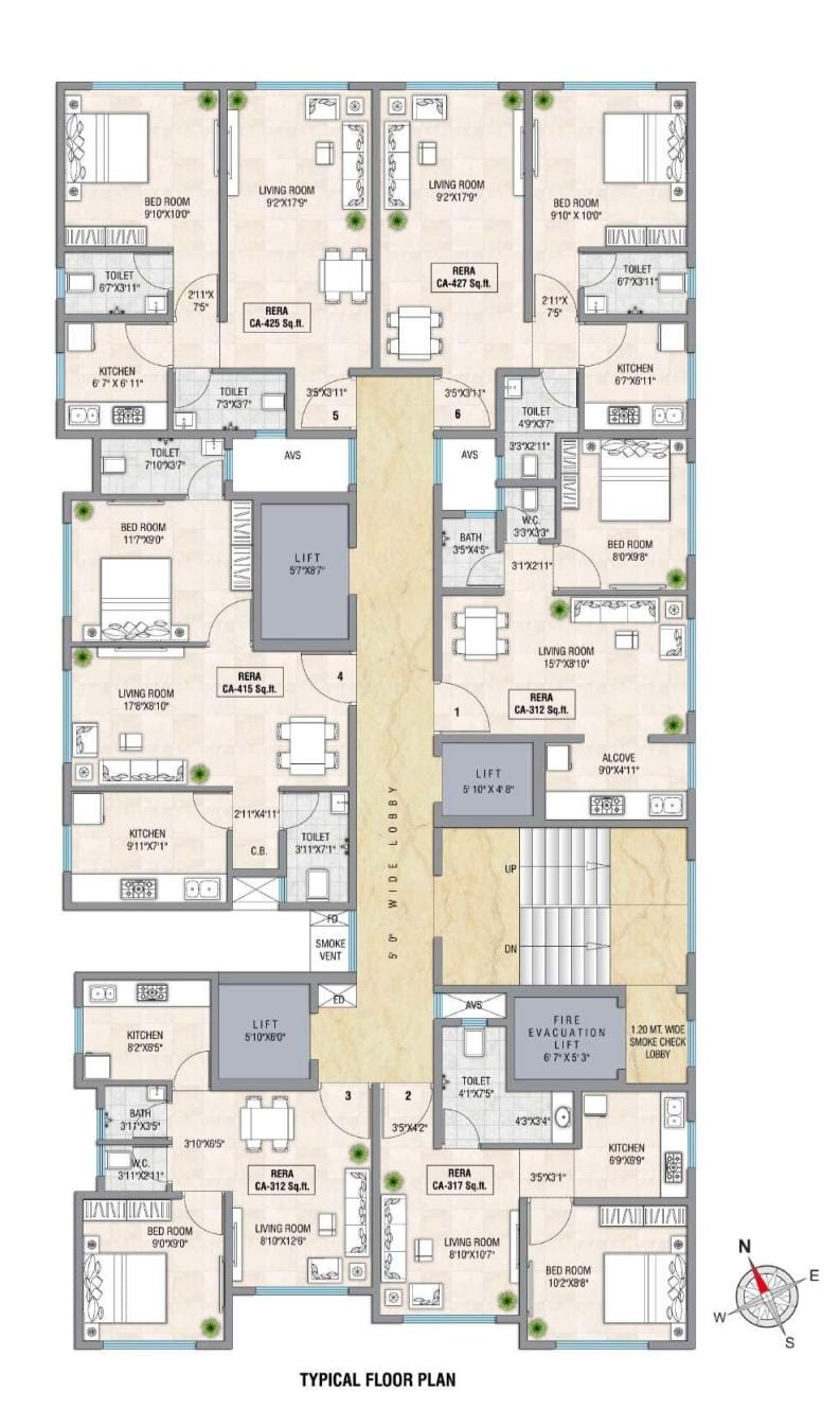 ✔ Ventilated flats with balconies, multiple bathrooms.