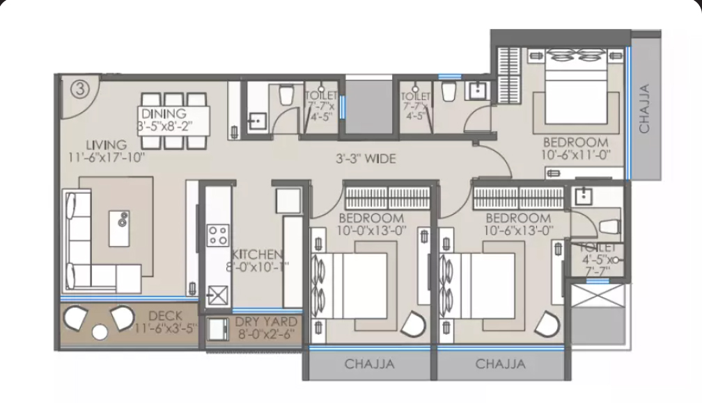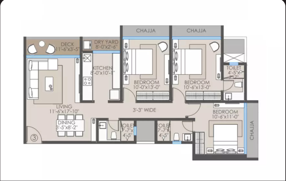 3 BHK Floor Plans